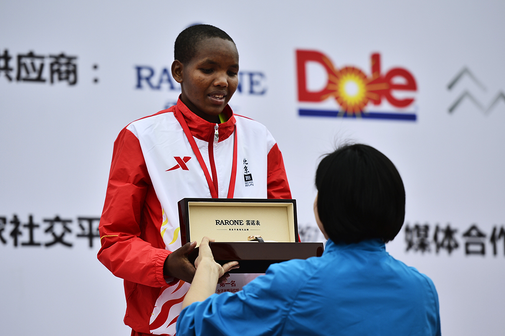 坦桑尼亞選手Sisilia Ginoka以1小時15分21秒摘得女子組第一,中國選手馬玉貴、羅川分別以1小時15分36秒和1小時18分07秒分列二三名。 男女冠亞季軍分別獲得由雷諾表送出的運動機械表等多款設計獨特的手表,繼續記錄他們賽場外的精彩每一刻。