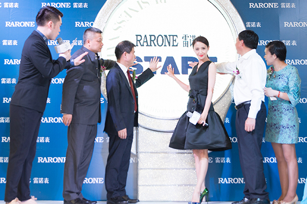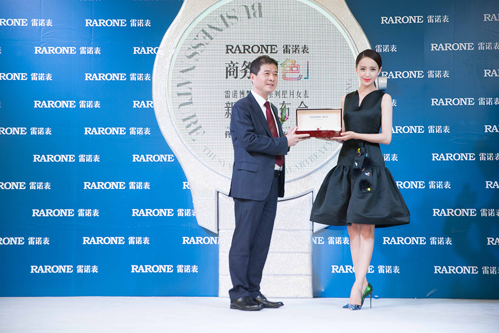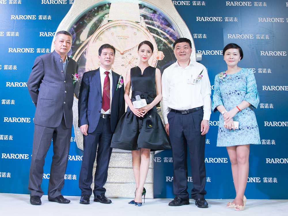在新品發(fā)布環(huán)節(jié),雷諾表業(yè)總經(jīng)理詹江洲先生,哈工大首創(chuàng)科技股份有限公司副總經(jīng)理、寧波第二百貨商店總經(jīng)理,全國(guó)勞動(dòng)模范黃炎水先生,中國(guó)國(guó)際鐘表展創(chuàng)始人兼籌委會(huì)主席,深圳市鐘表行業(yè)協(xié)會(huì)執(zhí)行會(huì)長(zhǎng)朱舜華先生以及深圳市雷諾表業(yè)副總經(jīng)理高湘蓮女士和佟麗婭一同為2015雷諾博鰲·鼎智系列星月女表新品揭幕。即日起,雷諾新品星月女表將正式亮相全國(guó)各地的雷諾專柜。隨后,雷諾表業(yè)總經(jīng)理詹江洲先生將剛剛發(fā)布的星月女表贈(zèng)予佟麗婭并親手為她佩戴。