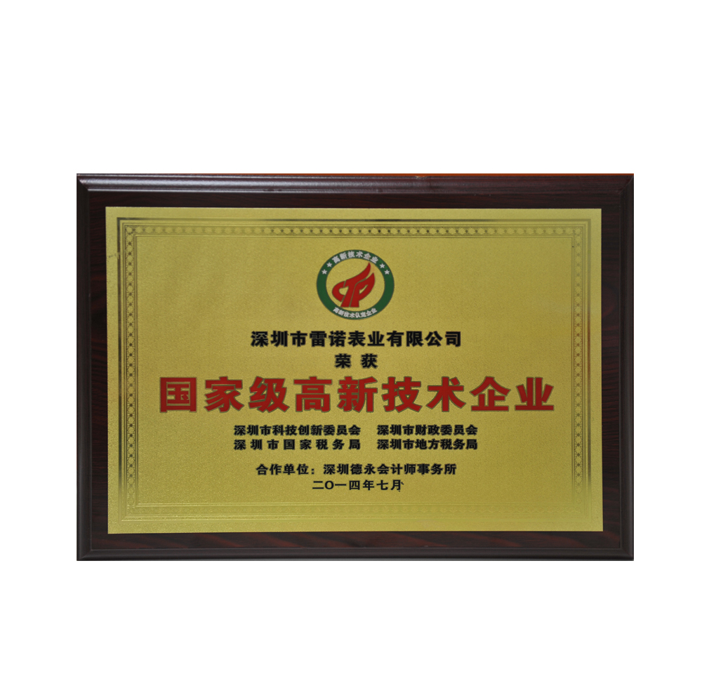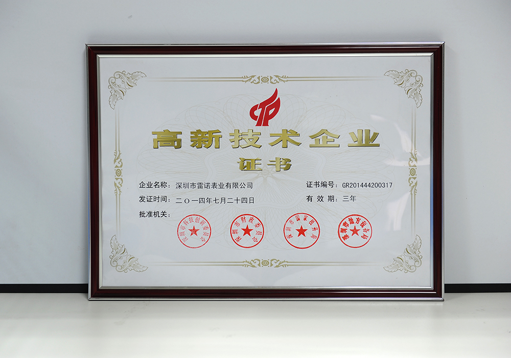 經(jīng)過國家科技部、財(cái)政部等相關(guān)部門的嚴(yán)格審核,雷諾表被認(rèn)定為“國家級(jí)高新技術(shù)企業(yè)”!這標(biāo)志著雷諾表在自主知識(shí)創(chuàng)新、核心專利產(chǎn)權(quán),科技技術(shù)研發(fā)及成果轉(zhuǎn)化方面,均達(dá)到行業(yè)水平,且在鐘表領(lǐng)域中具有較強(qiáng)的市場價(jià)值和資本價(jià)值。
