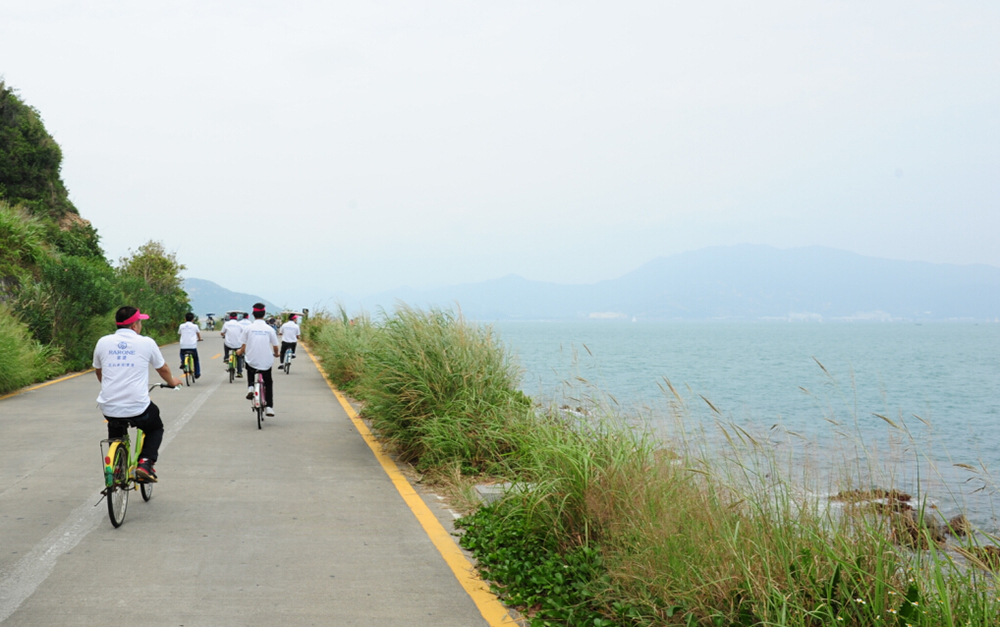 感受古色古香的文化后,下一站進發(fā)美麗的海灘——“楊梅坑”。楊梅坑號稱深圳最美的溪谷,山海相依,海水碧藍,水清石礪。小伙伴們一邊感受海邊美景,一邊迎著海風(fēng)騎著單車,訴說情誼,還有什么比這更悠閑的呢!