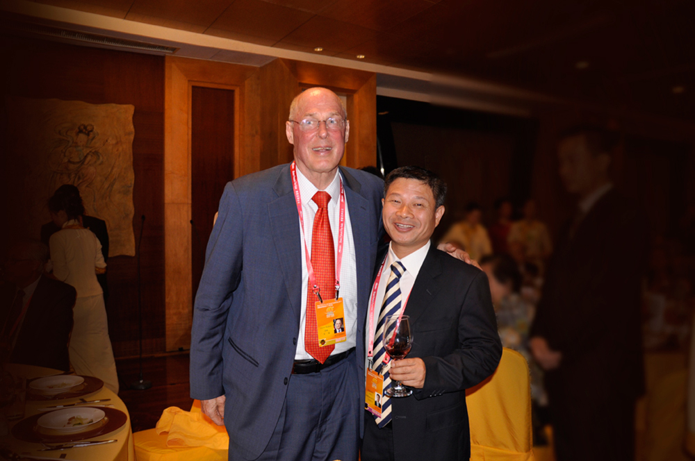 雷諾表業董事長詹西洲先生(右一)與美國前任財政部長亨利•保爾森在博鰲晚宴親密合影